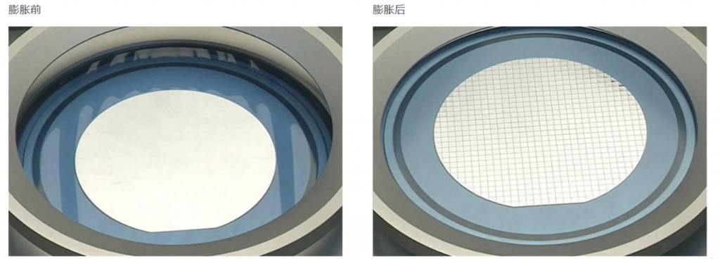 通過膠帶膨脹等行為在周邊方向上拉緊膠帶,對(duì)已形成 SD 層的晶圓施加外力。這會(huì)對(duì)晶圓的內(nèi)部裂紋狀態(tài)施加拉應(yīng)力,并使裂紋延伸到頂部和底部表面,從而分離晶片。由于晶圓分離是通過延伸裂紋進(jìn)行的,因此沒有應(yīng)力施加在器件上。此外,由于基本上沒有截口損失,這會(huì)提高芯片成品率。